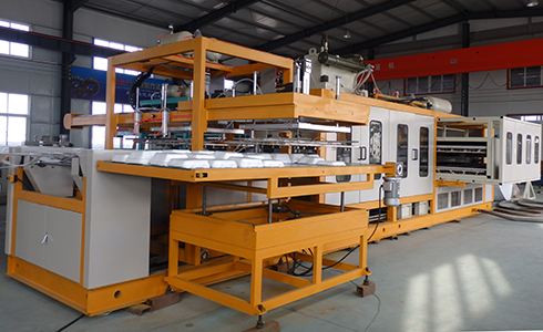 本公司研制開發(fā)的自動成型裁斷一體機是一種全能型的熱成型裁斷機組,以真空成型為主,兼壓空成型、模壓成型及綜合成型,可加工多種熱成型塑料片材。機組采用全電腦PLC控制,具有結(jié)構(gòu)先進,性能穩(wěn)定,易操作,產(chǎn)量高,成型面積大,自動化程度高等特點。本機主要用于成型PSP材料,用于食品餐盒、托盤、碗、杯等各式包裝制品。本設備的最大優(yōu)點是集成型裁斷一體。生產(chǎn)出的成品直接堆垛收集。本設備在生產(chǎn)過程中除了節(jié)能降耗等優(yōu)點外,還大大節(jié)省了工作面積、生產(chǎn)時間和勞動力的支出。